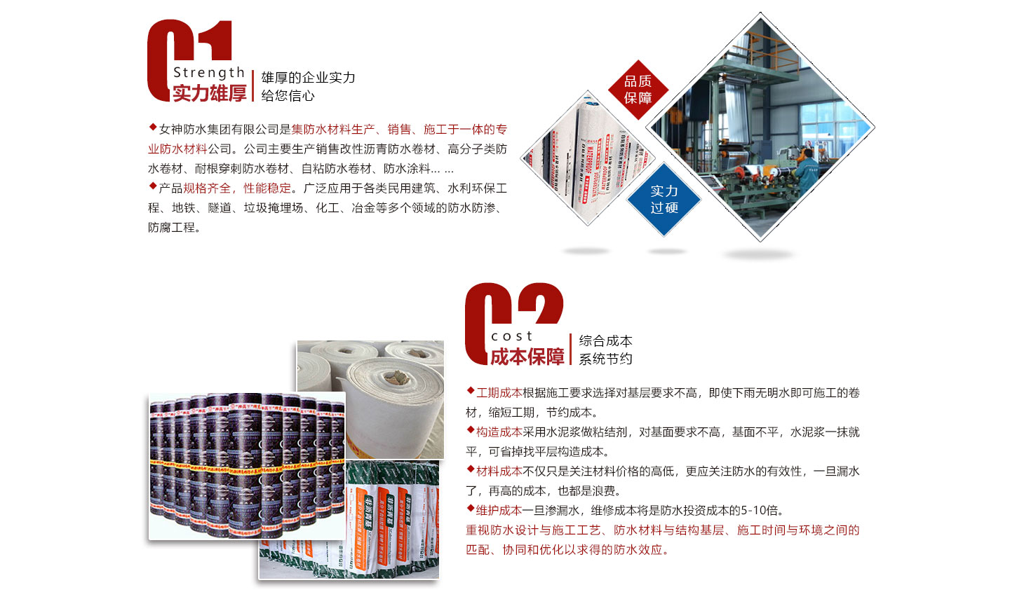 安徽女神建材科技集團(tuán)有限公司是集防水材料研發(fā)、生產(chǎn)、銷售、施工為一體的綜合性防水材料集團(tuán)公司。我公司旗下有多條大型一次成型生產(chǎn)線:SBS改性瀝青防水卷材,DTM聚酯復(fù)合高分子防水卷材,非瀝青基高分子防水卷材,PVC,TPO高分子防水卷材等生產(chǎn)線。我公司秉承“創(chuàng)新發(fā)展、實惠用戶”為宗旨,確保生產(chǎn)材料基礎(chǔ)上推出“共享生產(chǎn)廠家”,為開發(fā)商、建筑商節(jié)約成本為理念,新理念受到用戶企業(yè)集采時一致好評和認(rèn)可。在互聯(lián)網(wǎng)時代,我公司將以互聯(lián)網(wǎng)“共享”為發(fā)展理念,為開發(fā)商、建筑商、防水企業(yè)提供的產(chǎn)品,真正讓用戶企業(yè)達(dá)到巨大...